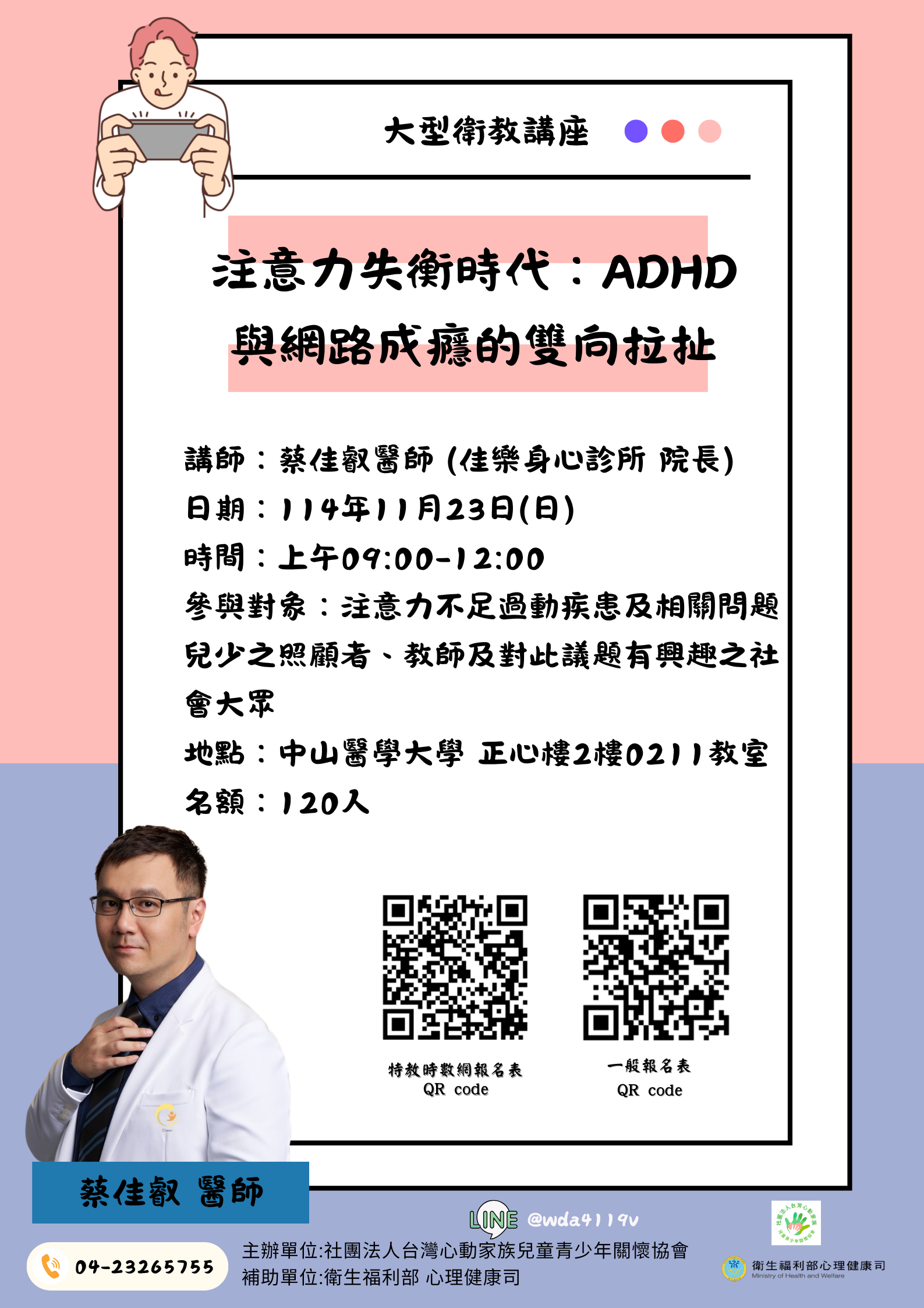 三、活動資訊如附件(或詳見海報 QR Code),誠摯邀請各校教師、輔導人員及對議題有興趣之家長踴躍報名參加。